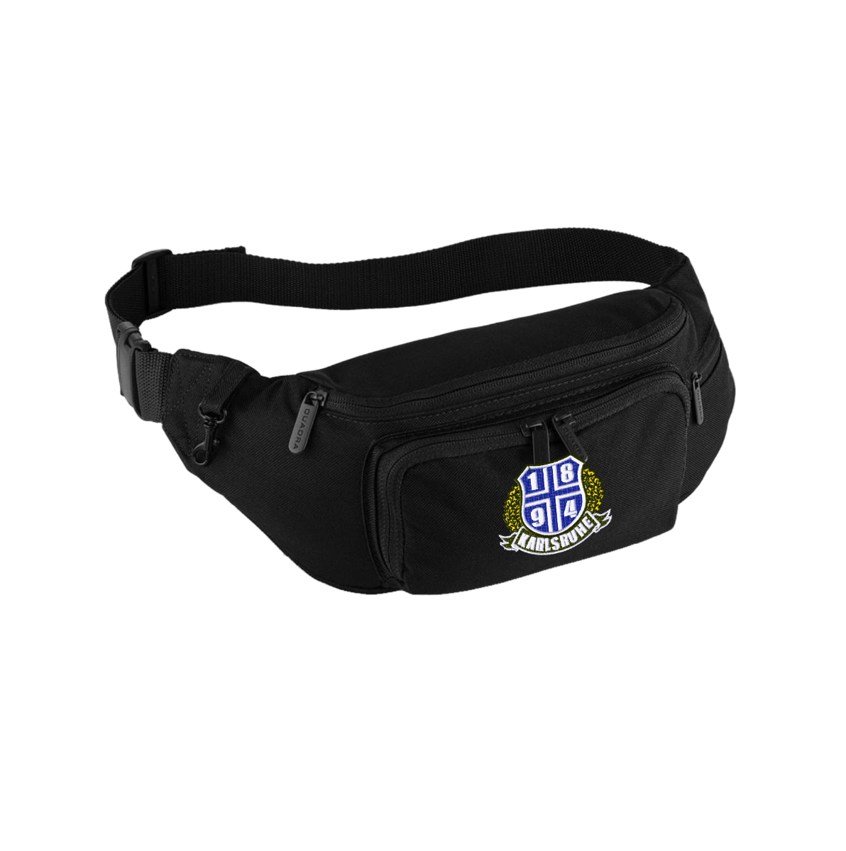 Bauchtasche in schwarz mit unserem 1894-Logo mit einem Kranz und Banderole bestickt.