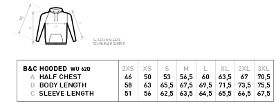Erhältlich in den Größen XS, S, M, L, XL, XXL, 3XL und 4XL.